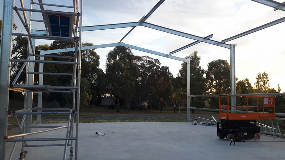 - No roof as I said yesterday just finishing off extra perlins, trimmers and internal walls.