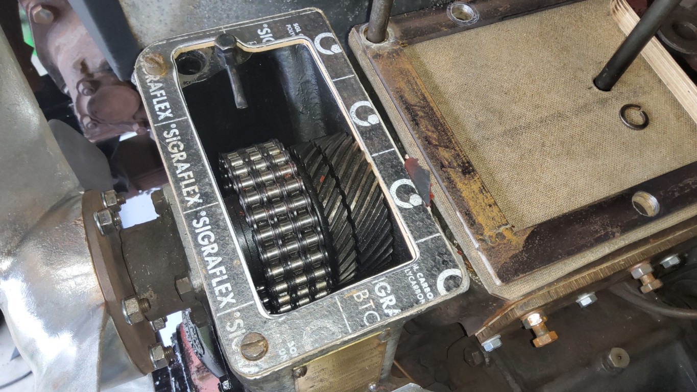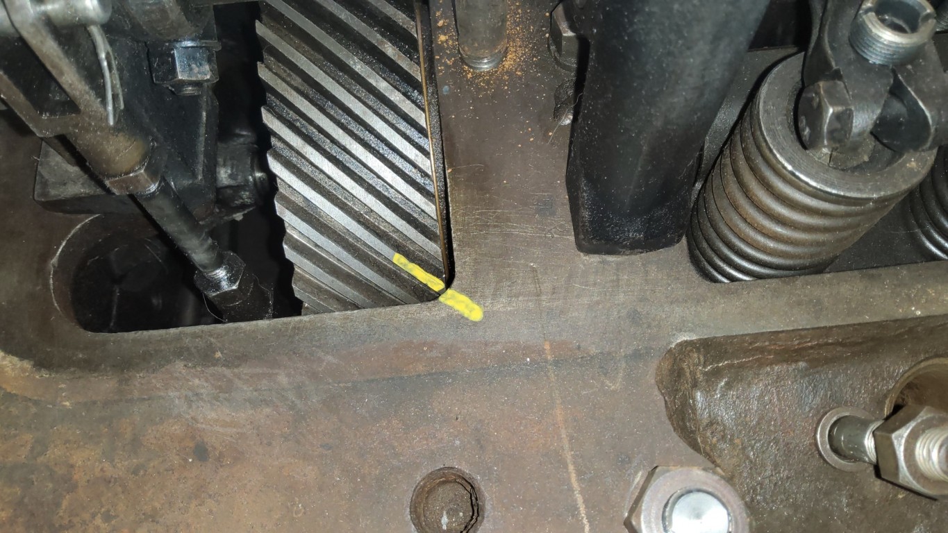 The engine is locked into top dead centre (TDC) and if you look on the head I have painted some yellow on the gear