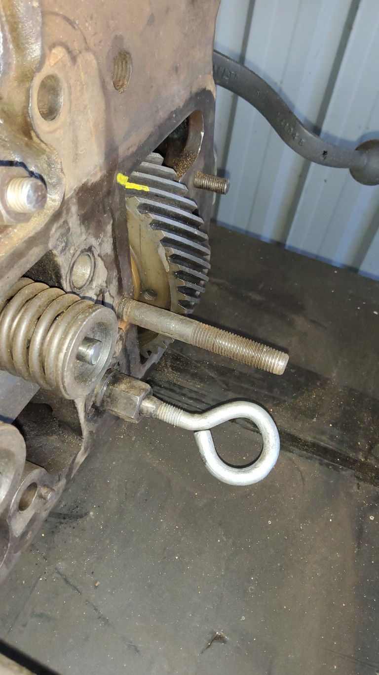 plate in the front of the head and undo all the bolts and move the cam shaft around and leave those helical gears in position.