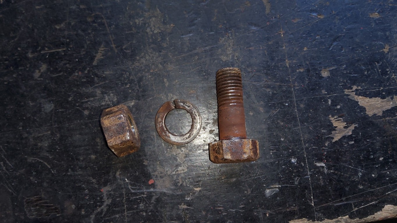Pictured is a typical one, which I put through the wire wheel and then just cleaned the threads of the nut and bolt using the tap and die.