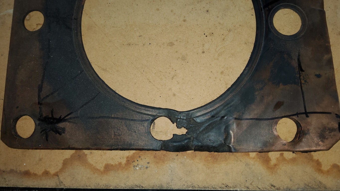 If you look at the head gasket (pictured) close up you can see where the gasket has blown.